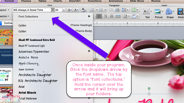 This morning I was downloading yet another set of fun fonts when I happened upon the most amazing thing. I found a way to organize my fonts so I don’t have to scroll down that long list hoping to find the one I “might” want. It may have been that second cup of coffee or the prayer I said about wanting to save time. Either way or a combination of both, here is what I found!